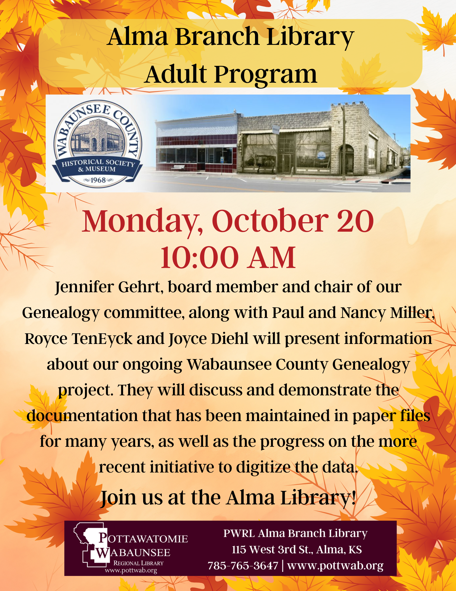 Come explore the resources at the PWRL Alma branch library. With a great selection of books to choose from you are sure to find something you like. We also have high-speed internet access, public patron computers, and 24x7 free access to wireless internet.